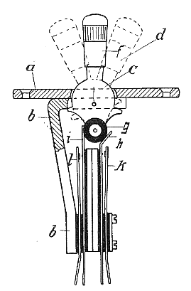 Die Scheibe endet nach oben in einem Hebel mit Griff f,