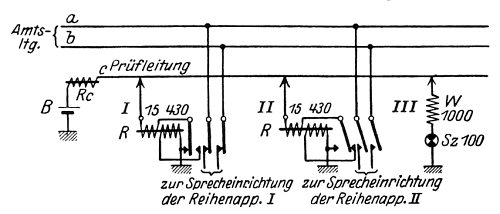 nacheinander an die Prüfleitungen der Amtsleitungen gelegt wird