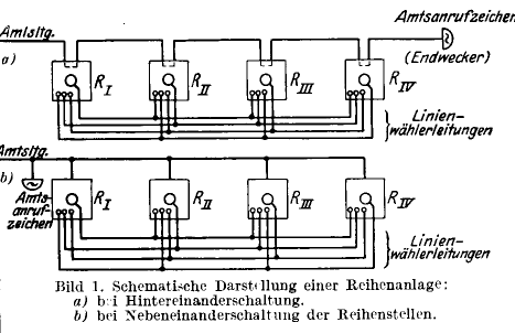 Ferner endet auf jedem Reihenapparat eine Nebenstellenleitung