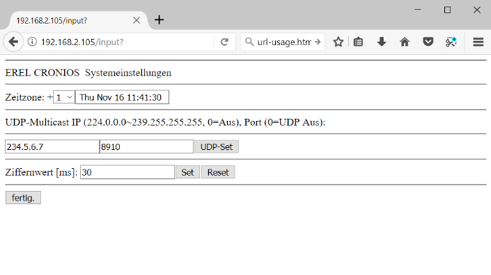 Das EREL-Cronios-Webinterface empfängt UDP-Telegramme